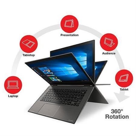 - 360° flip-and-fold design to offer 5 viewing modes;Wireless-AC, Wireless-AC (867 Mbps), bluetooth, 1xHDMI, 3x USB 3.0; DTS Sound, Built-in Harman Kardon stereo speakers